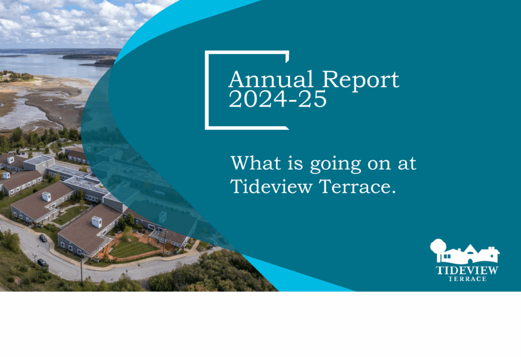 Tideview Terrace opened its doors in December 1973 to 50 residents. In 1982, the home expanded by 29 residents. In February 1996 renovations were completed to the third floor of the Digby General Hospital to convert it to a 10-resident special care floor for people affected by Alzheimer’s Disease and related Dementia. In August 2011, we moved to a state-of-the-art new home boasting 9-bedroom resident houses, beautiful gardens, gazebo, and access to the beach. We are currently home to 89 residents, plus one room for respite stays.